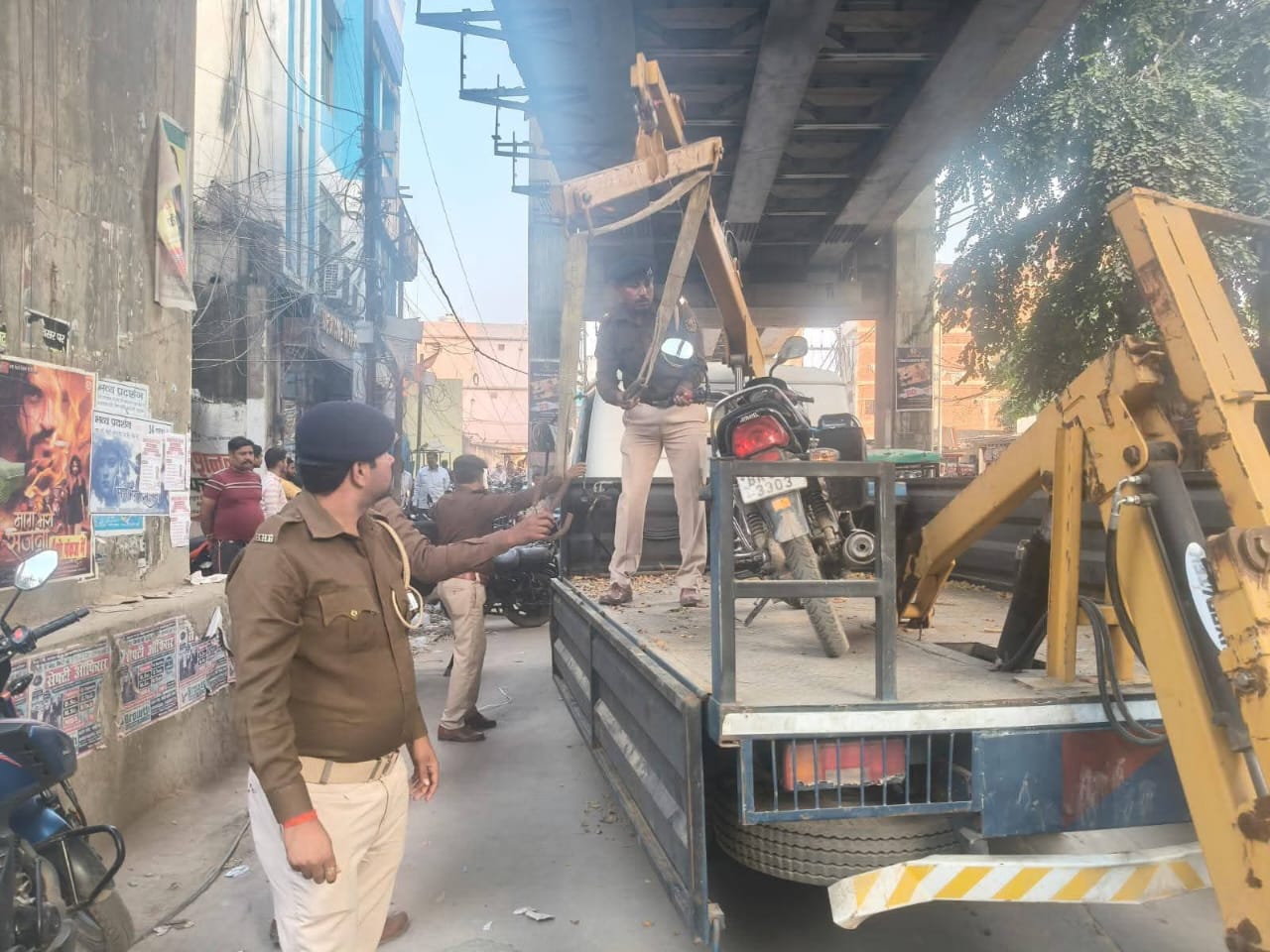 छपरा में यातायात पुलिस एक्शन में, टो मशीन से जब्त की जा रही बाइक