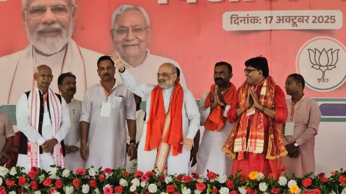 .तरैया विधानसभा क्षेत्र के मंझोपुर खेल के मैदान में शुक्रवार को चुनावी सभा का आगाज देश के गृहमंत्री अमित शाह ने किया. गृहमंत्री अमित शाह के साथ भाजपा प्रदेश अध्यक्ष दिलीप जयसवाल भी पहुंचे. चुनावी सभा को संबोधित करने के पूर्व गृहमंत्री व प्रदेश अध्यक्ष ने सारण जिला पश्चिमी भाग के दिवंगत जिलाध्यक्ष ब्रजमोहन सिंह की तैलचित्र पर पुष्प अर्पित कर श्रधांजलि अर्पित किये. गृहमंत्री ने चुनावी सभा संबोधित करने के पूर्व उपस्थित जनसमूह से एनडीए सरकार बनाना है या नहीं, बिहार को जंगलराज से बचाना है कि नहीं का संकल्प कराया गया. लोकनायक जय प्रकाश नारायण व भिखारी ठाकुर की धरती को नमन करते हुए गृहमंत्री अमित शाह ने कहा कि इस चुनाव की आगाज सारण से किया गया ताकि विजय ही विजय हो. उन्होंने कहा कि बिहार में जिस प्रकार का माहौल बना है एनडीए 20 साल में सबसे बड़े बहुमत की सरकार बनाने जा रही है. इस बार बिहारवासियों को चार- चार दीपावली मनाने का मौका मिलेगा. पहला दीपावली प्रभु श्री राम के वनवास से लौटने के उपलक्ष्य में होगा. दूसरा दीपावली जीविका दीदियों के खाते में दीपावली व छठ में खाते 10 – 10 हजार रुपये, तीसरी दीपावली जीएसटी में कटौती तथा चौथी दीपावली 14 नवम्बर को मतगणना समाप्ति के बाद होगी.जब लालू एंड राहुल कंपनी का सूपड़ा साफ हो जायेगा. उन्होंने 81 करोड़ गरीबों को अनाज,42 करोड़ लोगों का आयुष्मान कार्ड से उपचार, 15 करोड़ गरीबों के घर तक नल जल योजना,13 करोड़ किसानों को किसान सम्मान निधि,12 करोड़ घरों में शौचालय तथा 10 करोड़ लोगों को उज्जवल योजना का लाभ मिल रहा है. 370 धारा को हटाने तथा कश्मीर को जोड़ने का नरेन्द्र मोदी ने काम किया. पहलगाम में आतंकी हमला के बाद भारत की सेना ने पहली बार ऑपरेशन सिंदूर के तहत पाकिस्तान में घुसकर आतंकियों को मारने का काम किया. बिहार में एनडीए की सरकार ने 1.67 लाख परिवारों को 125 यूनिट फ्री बिजली,पेंशन की राशि में तीन गुणा वृद्वि 11 सौ रुपये मिल रहा है. बिहार के एक कोने से दूसरे कोने में जाने के लिए मात्र पांच घंटे का समय लगता है.